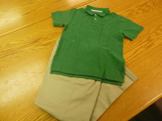 However, pants may now be any solid color other than red. For example, khaki or green pants can be worn now.